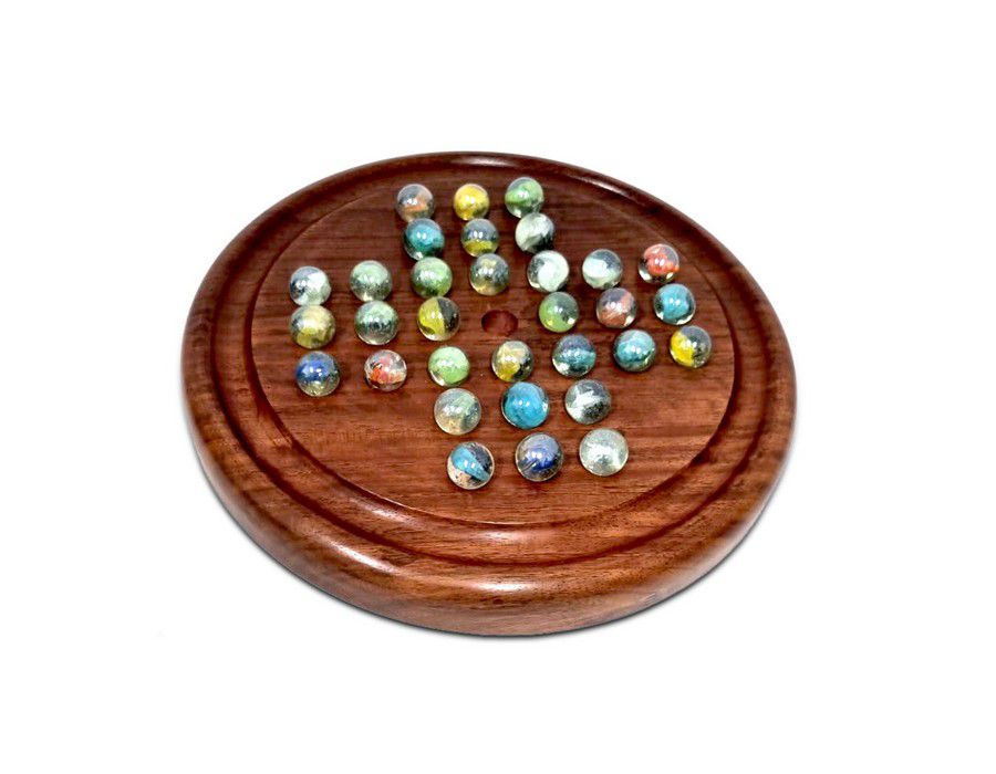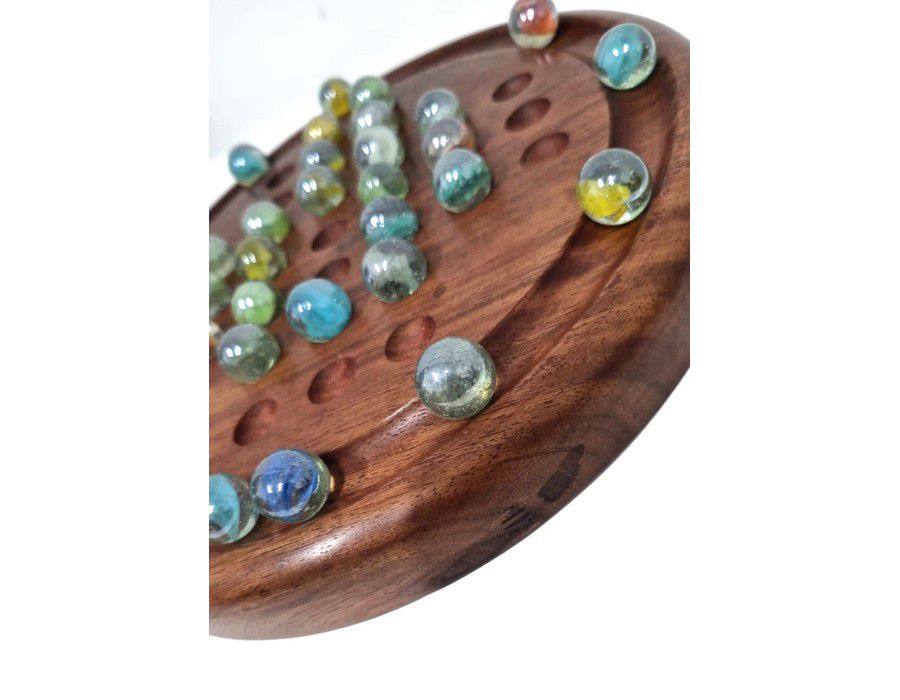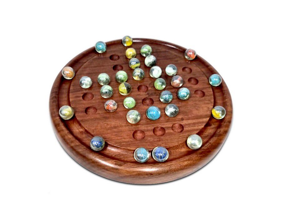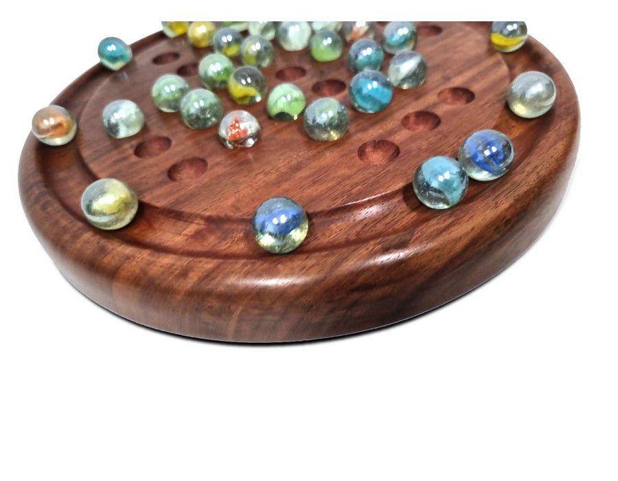 The game of Solitaire is most commonly played on a 33 point board in a cross shape with 32 pegs marbles or pieces.The wooden game comes with 32 Marbles in 33 point wooden board game.Product name: Wooden Solitaire Game Marble ballsModel #WSG-127Key Attributes: Hand Crafted Decorative.Uses: Home Decor Gift Souvenir Collectable History Art and Craft.