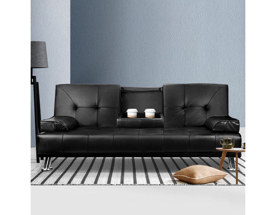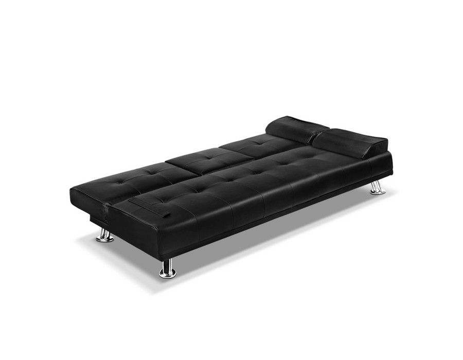 Lounge (3-seater) Combo Futon Designer Bed Faux Leather Black Sofa Couch